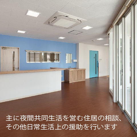 主に夜間共同生活を営む住居の相談、その他日常生活上の援助を行います。